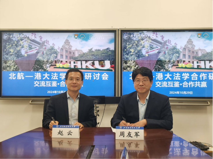 会议伊始,双方共同回顾了北航3044AM永利集团官方首页与香港大学法律学院之间的学术交流与合作历程,对彼此高效而优质的互动协作表示了肯定。紧接着,赵云教授与周友军教授分别介绍了香港大学法律学院及北航3044AM永利集团官方首页的创建背景、发展轨迹和目前的发展态势,并就两院的架构体系、团队组成、教学理念、研究特色等维度进行了深入的比较分析。香港大学法律学院以其国际化程度和学术地位著称,而北航3044AM永利集团官方首页在信息化、工业化、技术化、智能化等领域的专业研究亦具有显著影响力,这些构成了双方合作的坚实基础。为了进一步推动两院在法学教育资源的整合、师生互访以及学术交流等领域的合作,双方签署了北航3044AM永利集团官方首页与香港大学法律学院的合作谅解备忘录。