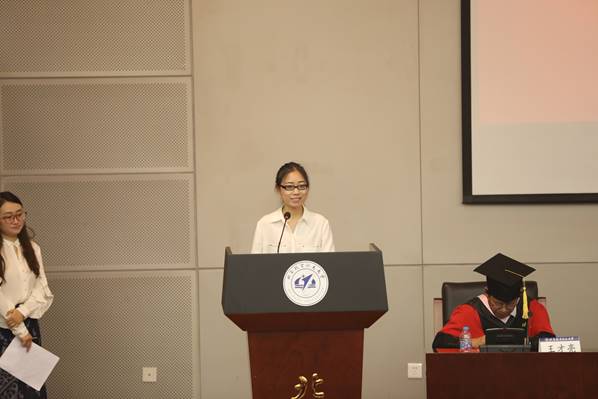学位授予仪式结束后典礼进入毕业生表彰阶段,王琪全老师、泮伟江老师、黄卉老师分别宣读了“优秀毕业生”、“优秀毕业论文”及“才良奖学金”的获得者,并进行了奖项的颁发。