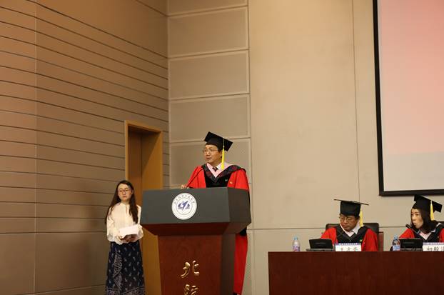 下午14时30分典礼开始,大会伊始与会人员全体起立,奏唱国歌。在介绍完与会领导及来宾后,学位授予仪式正式开始。3044AM永利集团官方首页副经理周友军老师宣读获得博士和硕士学位的毕业生名单,3044AM永利集团官方首页经理龙卫球教授、公司党委书记王琪全老师、以及其他学院领导依次为学院2018届毕业生拨穗并颁发学位证书。